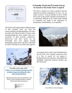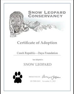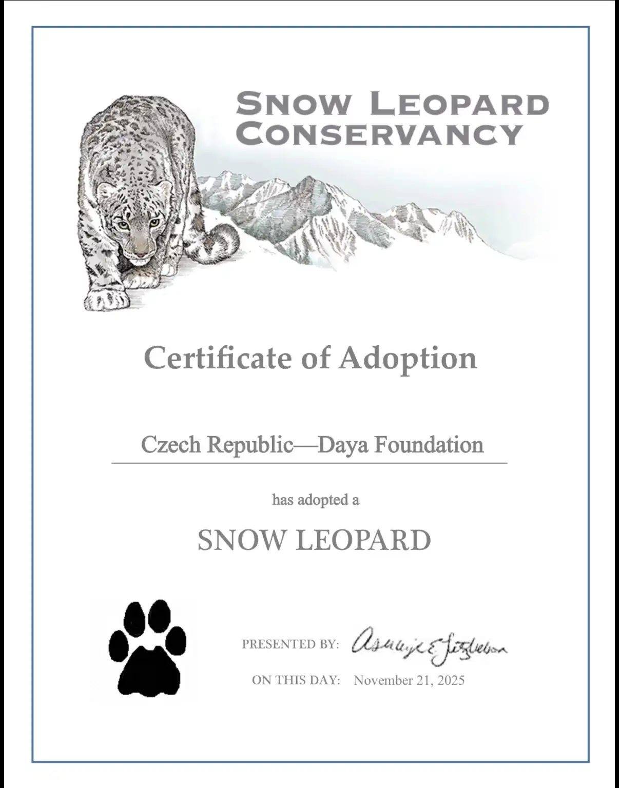 Z tohoto důvodu se naše nadace rozhodla podpořit organizaci Snow Leopard Conservancy fungující od roku 2000, která se zachraňuje sněžné leopardy, strážce asijských vysokých hor, prostřednictvím holistické ochrany a péče. Tato organizace využívá svých zaměstnanců, dobrovolníků i partnerů k ochraně přírody, přičemž jako svého patrona, ekologického ambasadora a symbol jedinečnosti živočišných druhů si vybrala právě sněžného leoparda.